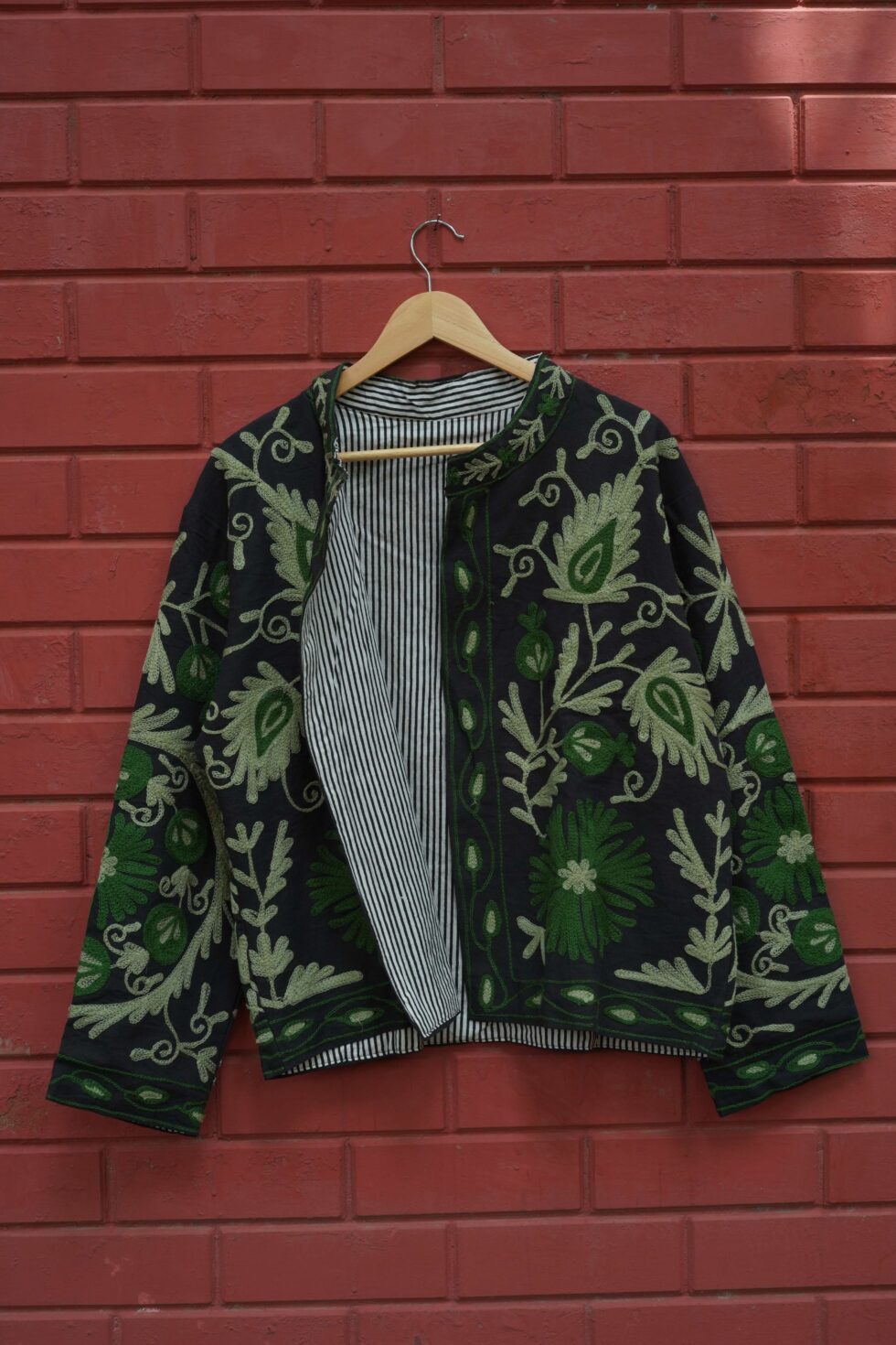 Elevate your festive and ethnic look with this stunning Suzani Embroidered Velvet Jacket. Crafted from premium-quality soft velvet fabric, this jacket offers a luxurious feel and rich texture that enhances every outfit. The intricate Suzani embroidery adds a royal charm and artistic appeal, making it a perfect fusion of traditional craftsmanship and modern style.