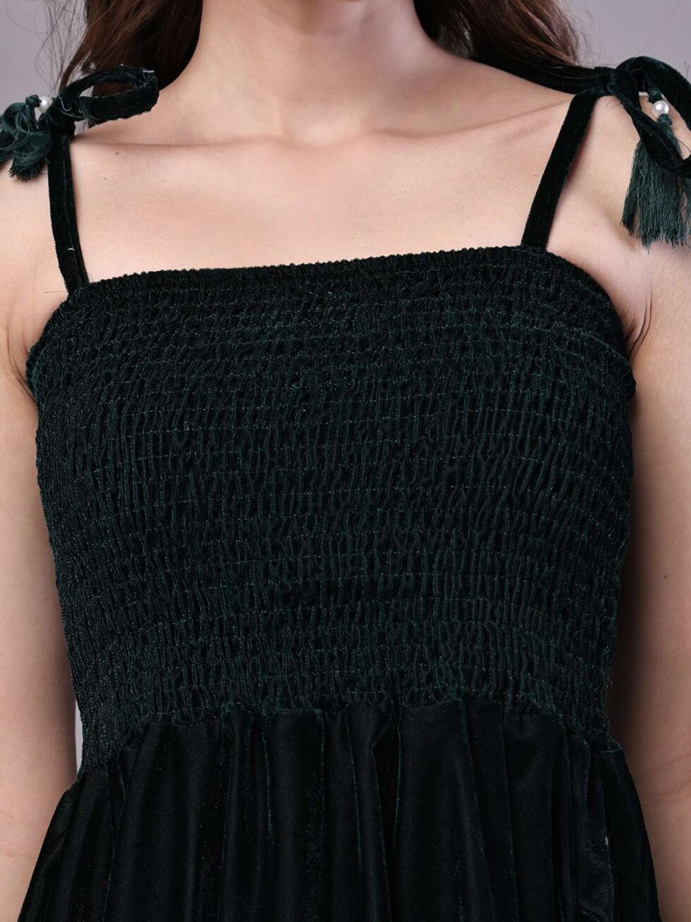 Women’s Bottle Green Junglee Pattern Velvet Handkerchief Hem Dress Midi Dresses